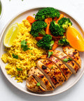 Elevate your dining experience with our delectable chicken and yellow rice dish. Savor the vibrant symphony of turmeric-infused yellow rice, perfectly complemented by tender chicken breast seasoned to perfection. Delight in the medley of fresh carrots and crisp broccolini that add a wholesome crunch to each bite. With 43g of protein and just 510 calories, this meal is a nutritious powerhouse, ensuring you feel nourished and satisfied. Accented by hints of orange zest, the flavors meld together in a harmonious dance, creating a culinary masterpiece that’s both healthy and indulgent. Dive into this delightful meal designed to fuel your day and tantalize your taste buds.