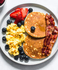 Bacon, Eggs, Milk, Maple Syrup, Strawberries, Blueberries, Avocado Oil, Kosher Salt, Black Pepper, Baking Powder, Pancake Mix [Whole Grain Oat Flour, Whey Protein Isolate, Pea Protein, Sweet Cream, Buttermilk, Sea Salt]