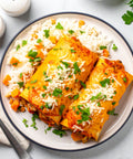 Indulge in a symphony of flavors with our mouth-watering, health-conscious meal that tantalizes your taste buds and fuels your day. Delight in tender chicken enveloped in a rich enchilada sauce, perfectly paired with a zesty chipotle salsa. Experience the creamy allure of shredded cheese and cream cheese flowing over hearty refried beans and aromatic rice. Savor the savory notes of garlic and smoked paprika, balanced by the sweetness of butternut squash. Each bite is a nutritious powerhouse, boasting 26g of protein and 7g of dietary fiber, ensuring you stay satisfied and energized. With a delightful crunch from the corn tortilla, this dish is a glorious fusion of taste, nutrition, and freshness—truly a feast for your senses.
