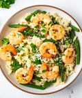 Shrimp, Haricot Verts, Orzo Pasta, Parmesan Cheese, Lemon Juice, Avocado Oil, Garlic, Parsley, Lemon Zest, Oregano, Kosher Salt, Vegetable Stock [Tomato Juice, Salt, Sugar, Potato, Carrots, Onions]
