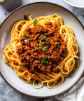 Crushed Tomatoes, Spaghetti Pasta, Onions, Tomato Paste, Lentils, Fresh Spinach, Walnuts, Avocado Oil, Balsamic Vinegar, Garlic, Kosher Salt, Black Pepper, Oregano, Thyme, Red Cooking Wine, Vegetable Stock [Tomato Juice, Salt, Sugar, Potato, Carrots, Onions]