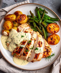 Chicken Breast, Baby Potato, Haricot Verts, Heavy Cream, Avocado Oil, Lemon Juice, Salted Butter, Garlic, Kosher Salt, Granulated Garlic, Italian Seasoning, Black Pepper, Dill, Granulated Onion, Dried Basil, Parsley, Vegetable Stock [Tomato Juice, Salt, Sugar, Potato, Carrots, Onions]