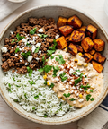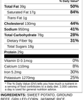 Sweet Potato, Ground Beef, Grilled Corn, Jasmine Rice, Heavy Cream, Onions, Filtered Water, Cream Cheese, Apple Cider Vinegar, Brown Sugar, Cilantro, Chili Powder, Kosher Salt, Avocado Oil, Garlic, Smoked Paprika, Granulated Onion, Salted Butter, Granulated Garlic, Cumin, Oregano, Cayenne Pepper, Black Pepper