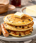 Milk, Maple Syrup, Apple Butter, Mini Chocolate Chips, Baking Powder, Cinnamon, Pancake Mix [Whole Grain Oat Flour, Whey Protein Isolate, Pea Protein, Sweet Cream, Buttermilk, Sea Salt], Nutmeg, Turkey Sausage Patty [Turkey, Salt, Spices, Sugar]