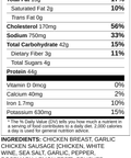 Chicken Breast, Garlic Chicken Sausage [Chicken, White Wine, Sea Salt, Garlic, Pepper, Rosemary, Lemon Zest], Crushed Tomatoes, Brown Rice, Onions, Celery, Lemon Juice, Avocado Oil, Red Bell Pepper, Chicken Stock, Cornstarch, Jalapeno, Kosher Salt, Garlic, Cajun Seasoning, Granulated Garlic, Granulated Onion, Thyme, Dried Basil, Parsley, Black Pepper, Bay Leaf, Vegetable Stock [Tomato Juice, Salt, Sugar, Potato, Carrots, Onions]