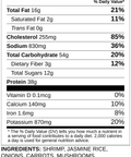 Shrimp, Jasmine Rice, Onions, Carrots, Mushrooms, Zucchini, Avocado Mayo, Teriyaki Sauce [Sugar, Soy Sauce, Prune Juice, Salt], Low Sodium Soy Sauce, Avocado Oil, Celery, Kosher Salt, Garlic, Black Pepper, Dijon Mustard, Rice Wine Vinegar
