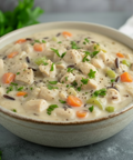 Chicken Breast, Whole Milk, Onions, Wild Rice, Carrots, Heavy Cream, Celery, Unsalted Butter, All Purpose Flour, Chicken Stock, Lemon Juice, Avocado Oil, Kosher Salt, Garlic, Fresh Sage, Lemon Zest, Rosemary, Granulated Onion, Granulated Garlic, Dried Basil, Parsley, Black Pepper, Marjoram, Thyme