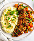 Chicken Breast, Celery Root, Rainbow Carrots, Potato, Milk, Salted Butter, Avocado Oil, Lemon Juice, Balsamic Vinegar, Kosher Salt, Chili Powder, Parsley, Black Pepper, Fresh Rosemary, Granulated Garlic, Smoked Paprika, Cumin, Fresh Thyme, Crushed Red Pepper, Coriander