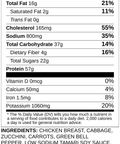 Chicken Breast, Cabbage, Zucchini, Carrots, Green Bell Pepper, Low Sodium Tamari Soy Sauce, Honey, Red Bell Pepper, Avocado Oil, Sesame Seed, Brown Sugar, Garlic, Granulated Garlic, Kosher Salt, Black Pepper, Ground Ginger, Stir Fry Sauce [Soy Sauce, Corn Starch, Sugar, Rice Vinegar, Garlic, Ginger, Green Onion], Rice Wine Vinegar, Sesame Oil, Chili Paste