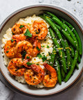 Shrimp, Cauliflower Rice, Haricot Verts, Heavy Cream, Parmesan Cheese, Lemon Juice, Milk, Avocado Oil, Lemon Zest, Garlic, Oregano, Kosher Salt, Black Pepper