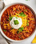 Ground Turkey, Tomato Sauce, Fire-Roasted Tomatoes, Sour Cream, Onions, Cheddar Cheese, Ketchup, Avocado Oil, Sugar, Chicken Stock, Chili Powder, Kosher Salt, Cumin, Garlic, Black Pepper