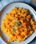 Ingredients: 1/2 Inch Butternut Squash, Arborio Rice, Onion, Parmesan Cheese, Unsalted Butter, Avocado Oil, Kosher Salt, Garlic, Black Pepper, White Cooking Wine, Vegetable Stock