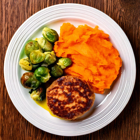 Ground Turkey, Sweet Potato, Brussels Sprouts, Honey, Avocado Mayo, Dijon Mustard, Avocado Oil, Sour Cream, Salted Butter, Green Onion, Balsamic Vinegar, Lemon Juice, Parsley, Kosher Salt, Granulated Onion, Garlic Powder, Black Pepper, Garlic, Smoked Paprika, Mustard Dijon