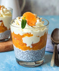 Almond Milk, Oranges, Chia Seeds, Heavy Cream, Mascarpone Cheese, Maple Syrup, Sugar, Vanilla Extract, Coconut Milk