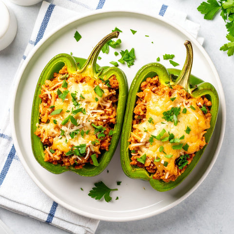Ground Turkey, Green Bell Pepper, Marinara Sauce, Shredded Mozzarella, Rice, Worcestershire Sauce, Avocado Oil, Kosher Salt, Black Pepper, Italian Seasoning, Granulated Garlic, Granulated Onion