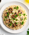 Mushrooms, Arborio Rice, Onions, White Cooking Wine, Unsalted Butter, Chicken Stock, Parmesan Cheese, Avocado Oil, Parsley, Kosher Salt, Chives
